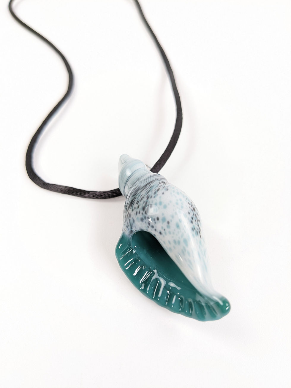 Glass Hawaiian Crescent Moon Pendant (teal)