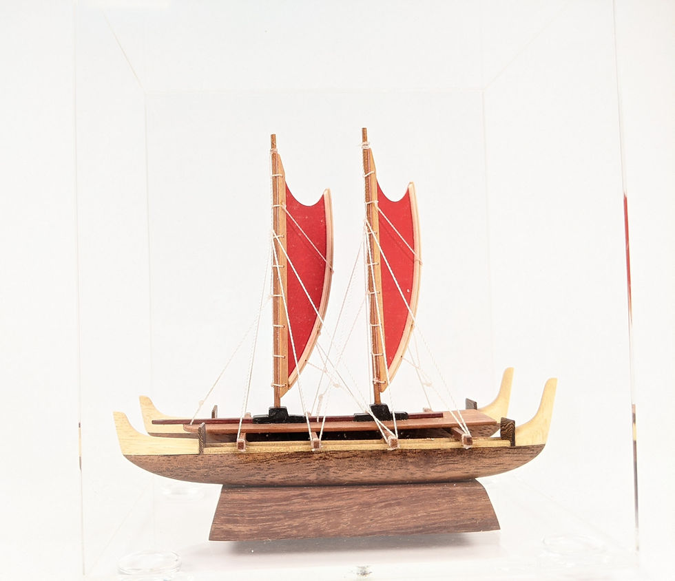 Hawaiian Koa Wood Manini Canoe Hokulea w. Acrylic Case